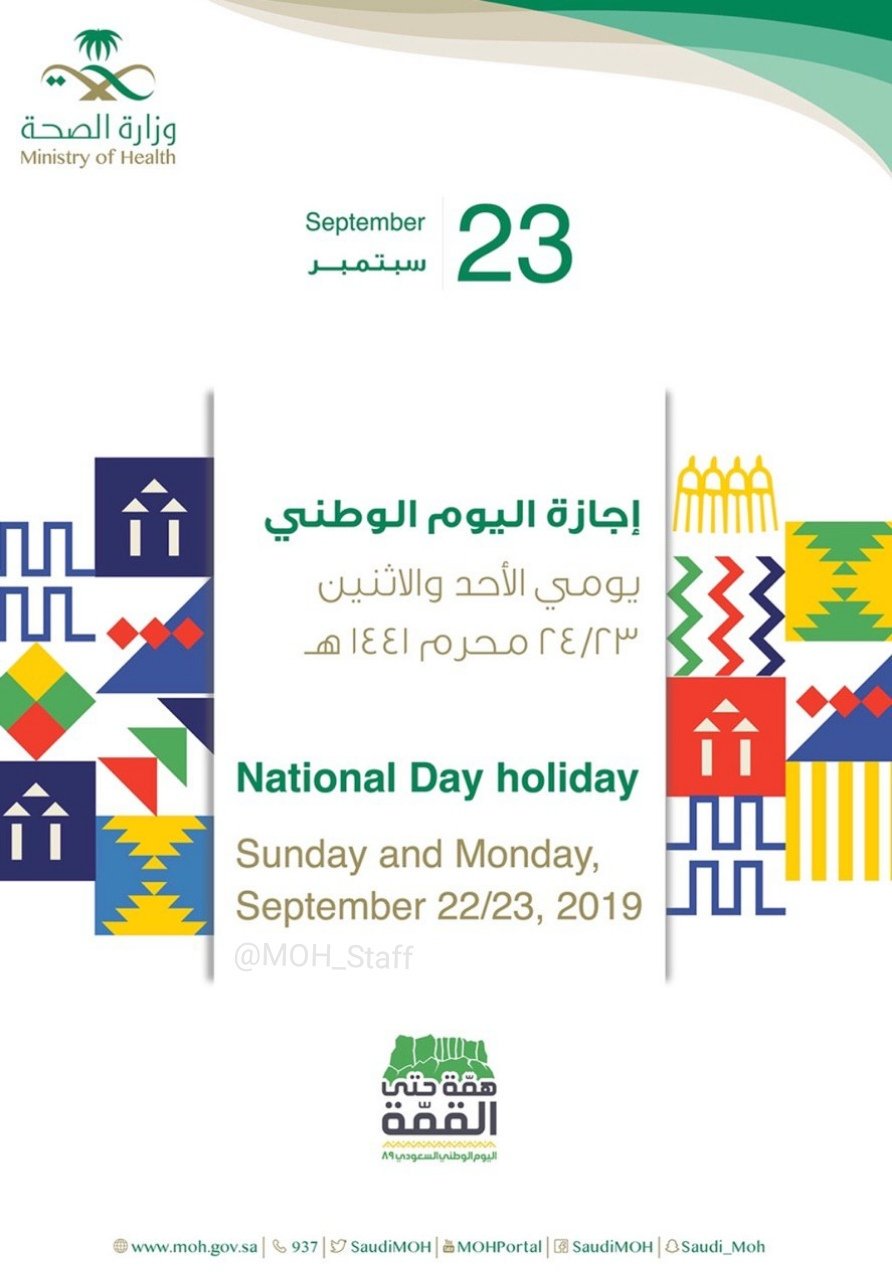 ملتقى منسوبي وزارة الصحة On Twitter إجازة اليوم الوطني Moh Staff