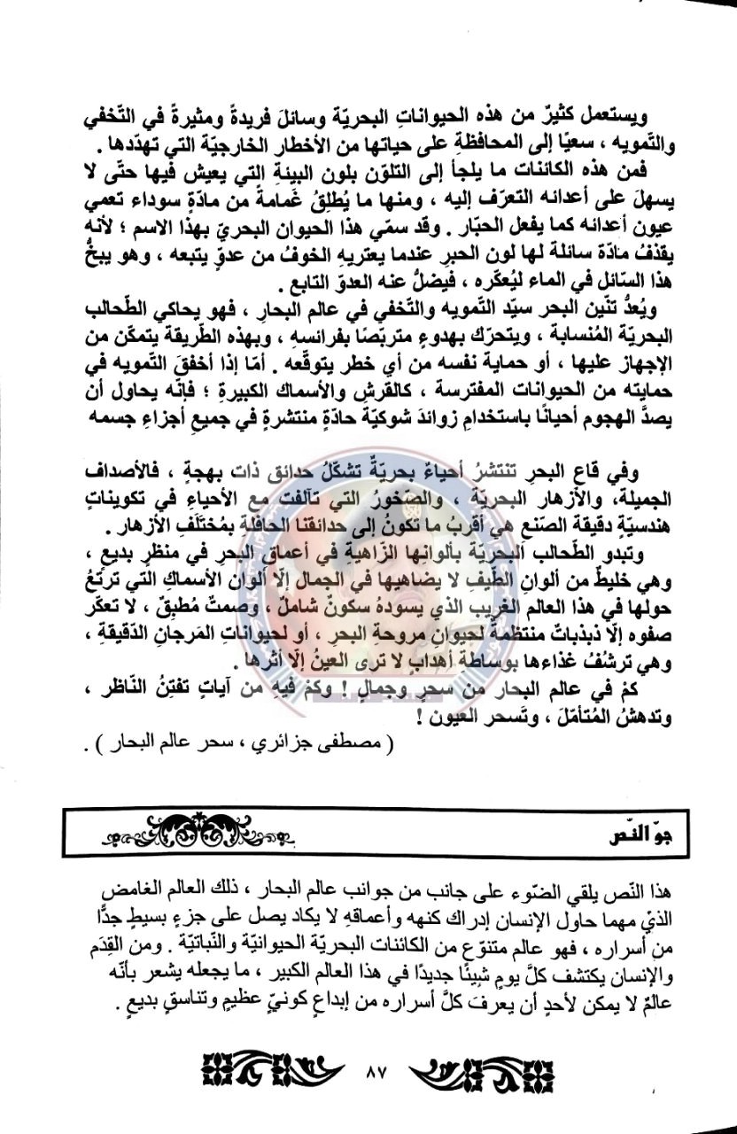 بالصور شرح وأفكار ومعاني درس رحلة في عالم البحار لمادة اللغة العربية للصف الثامن الفصل الثاني منتديات صقر الجنوب